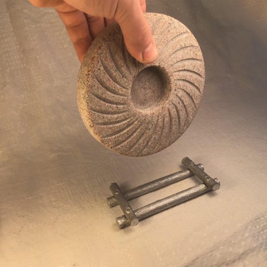 Dekoratīvs dzirnakmens ar svečtura funkciju tējas svecei. Novietojams uz galda vai stiprināms pie akmeņa
