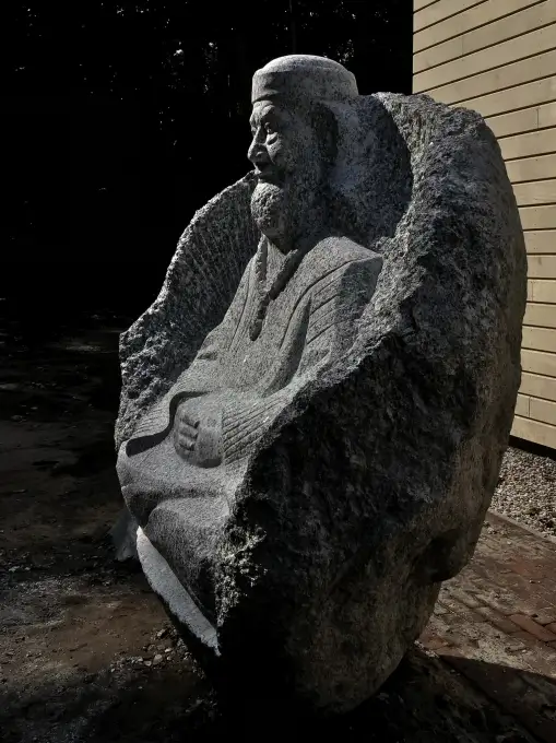 Vēsturiskās personības figūras atveids no sānskata, kas veidots no viengabala akmens